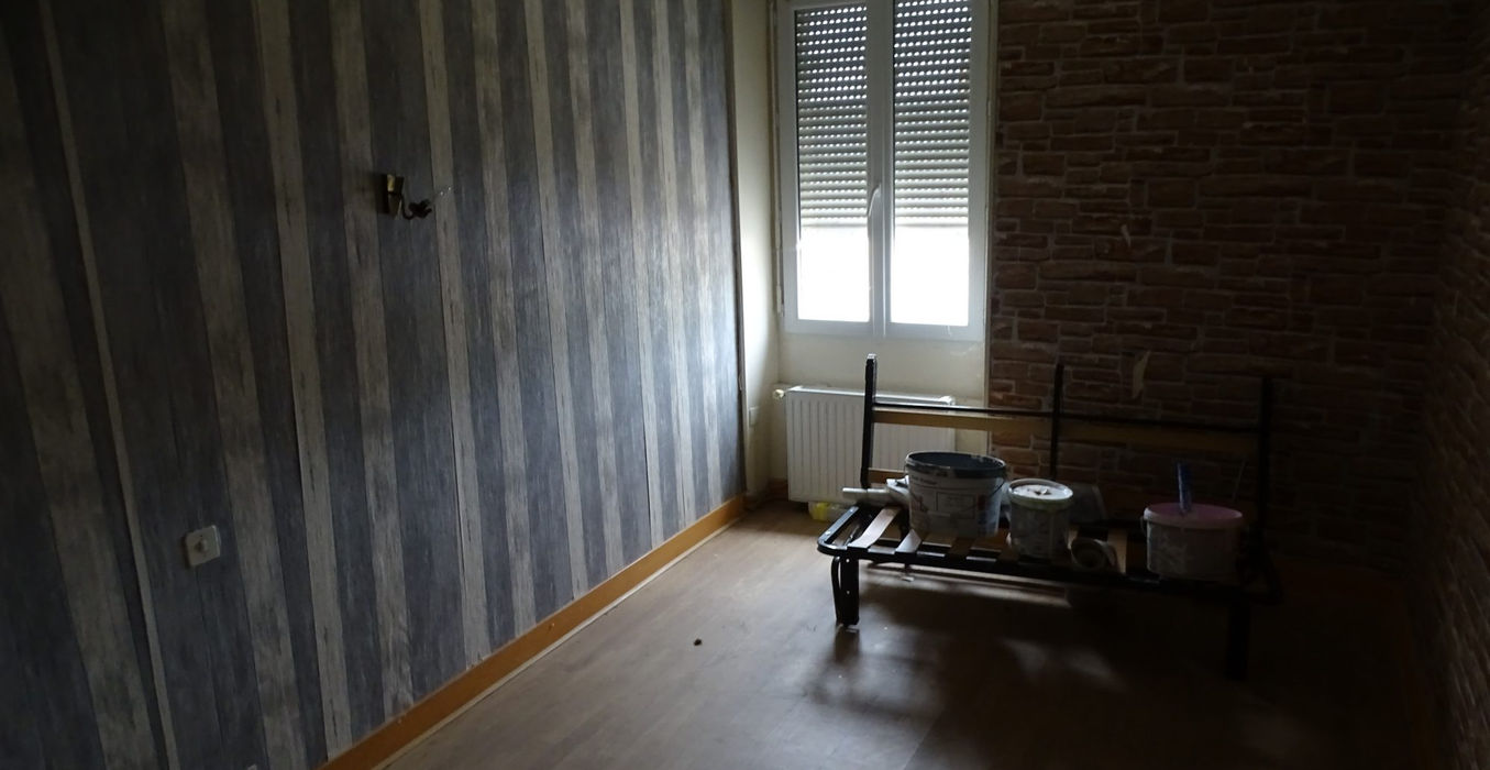Double vitrage PVC avec volets roulants manuels. Chaudière gaz de ville.